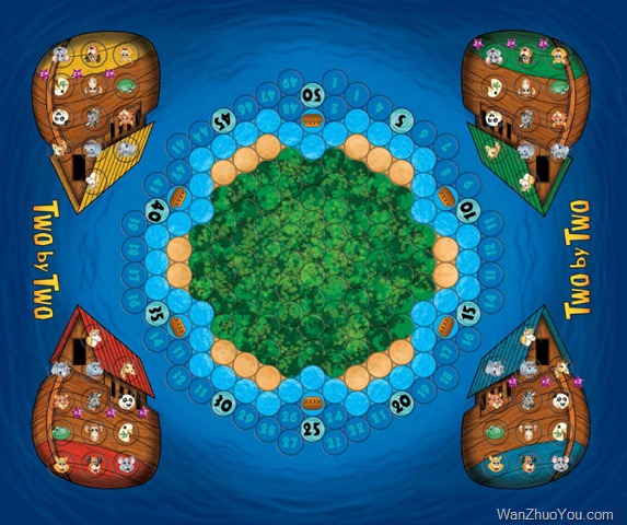 这是一款有关收集动物的游戏,游戏名称来源于诺亚方舟中的故事情节。玩家在一块环境逐渐恶劣的景观处移动他们的船,一起去营救搁浅的动物。游戏的目的是尽快找到配对的动物,并且在对手提高水深的同时,帮助动物们登上你的方舟。